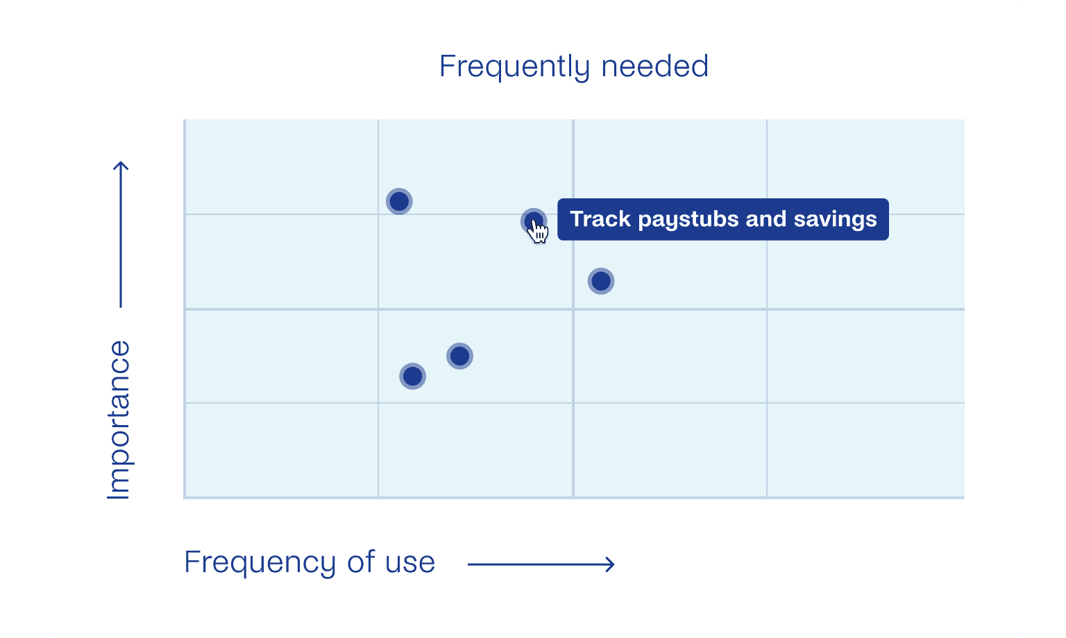 Reduced delivery risk and saved engineering time by validating and deprioritizing prospective features—including paystub access, wellness resources, and career guidance—through early research and evaluation.