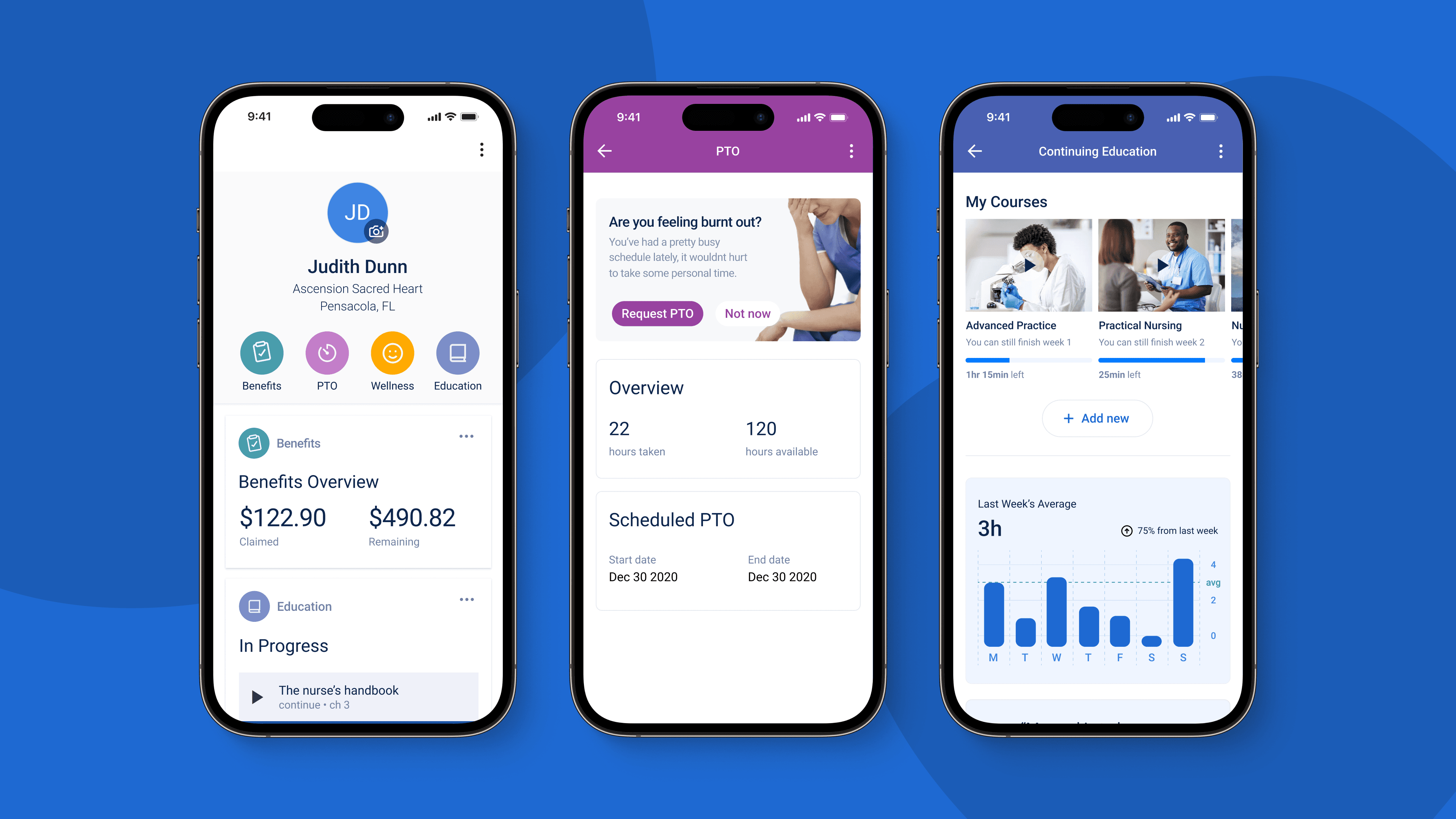 Nurses are frequently stretched thin in healthcare and part of the problem is disparate and outdated technology. Too frequently nurses had to jump over hurdles to do simple tasks like checking their schedule or accessing basic resources. Ascension wanted to provide nurses with a one-stop-shop platform that could help nurses flourish both professionally and personally.